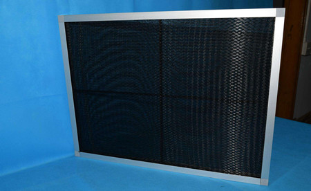材料選用金屬濾網組成時,則構成耐高溫金屬過濾器,它一般也叫催化網,是常見于設備廠、鍋爐廠等用于阻擋電焊時濺出的顆粒物,里面加不銹鋼網時,可用作空調系統中的預過濾,特別適合于醫院等一些高要求環境場所,它的區別在于容菌量比一般過濾棉要低,且耐高溫。