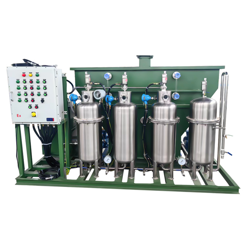 輕油污水處理裝置主要由斜板分離器、高效水-油分離器(含預(yù)過濾器、重力分離器、高效聚結(jié)分離器、吸附過濾器)、底架、控制箱及相應(yīng)的配套裝置組成。